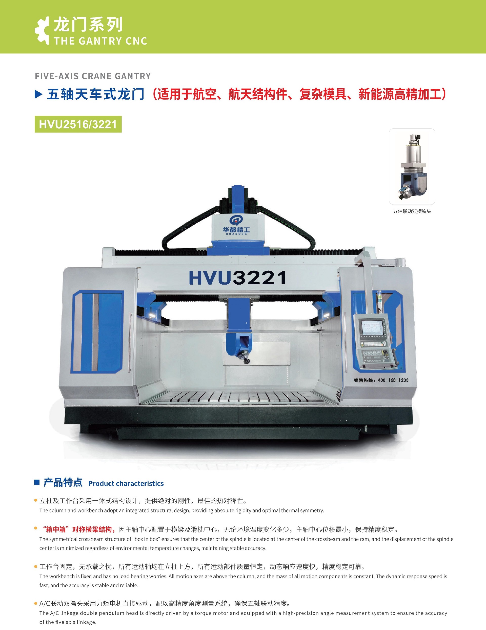 五軸天車式龍門(適用于航空、航天結構件、復雜模具、新能源高精加工)-龍門加工中心-華都精工-鏜銑床制造商-華都精工(南通)精密機械有限公司