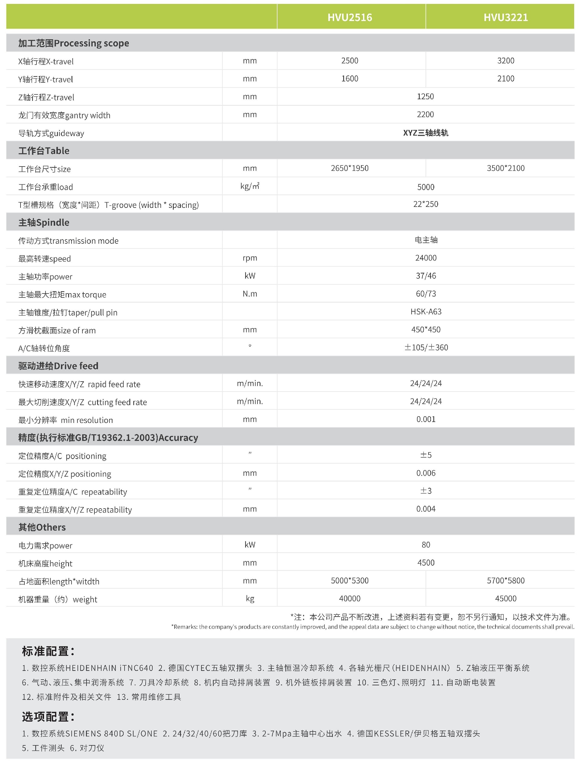 立柱及工作臺采用一體式結構設計,提供絕對的剛性,最佳的熱對稱性;“箱中箱”對稱橫梁結構,因主軸中心配置于橫梁及滑枕中心,無論環(huán)境溫度變化多少,主軸中心位移最小,保持精度穩(wěn)定;工作臺固定,無承載之憂,所有運動軸均在立柱上方,所有運動部件質量恒定,動態(tài)響應速度快,精度穩(wěn)定可靠;A/C聯(lián)動雙擺頭采用力矩電機直接驅動,配以高精度角度測量系統(tǒng),確保五軸聯(lián)動精度;